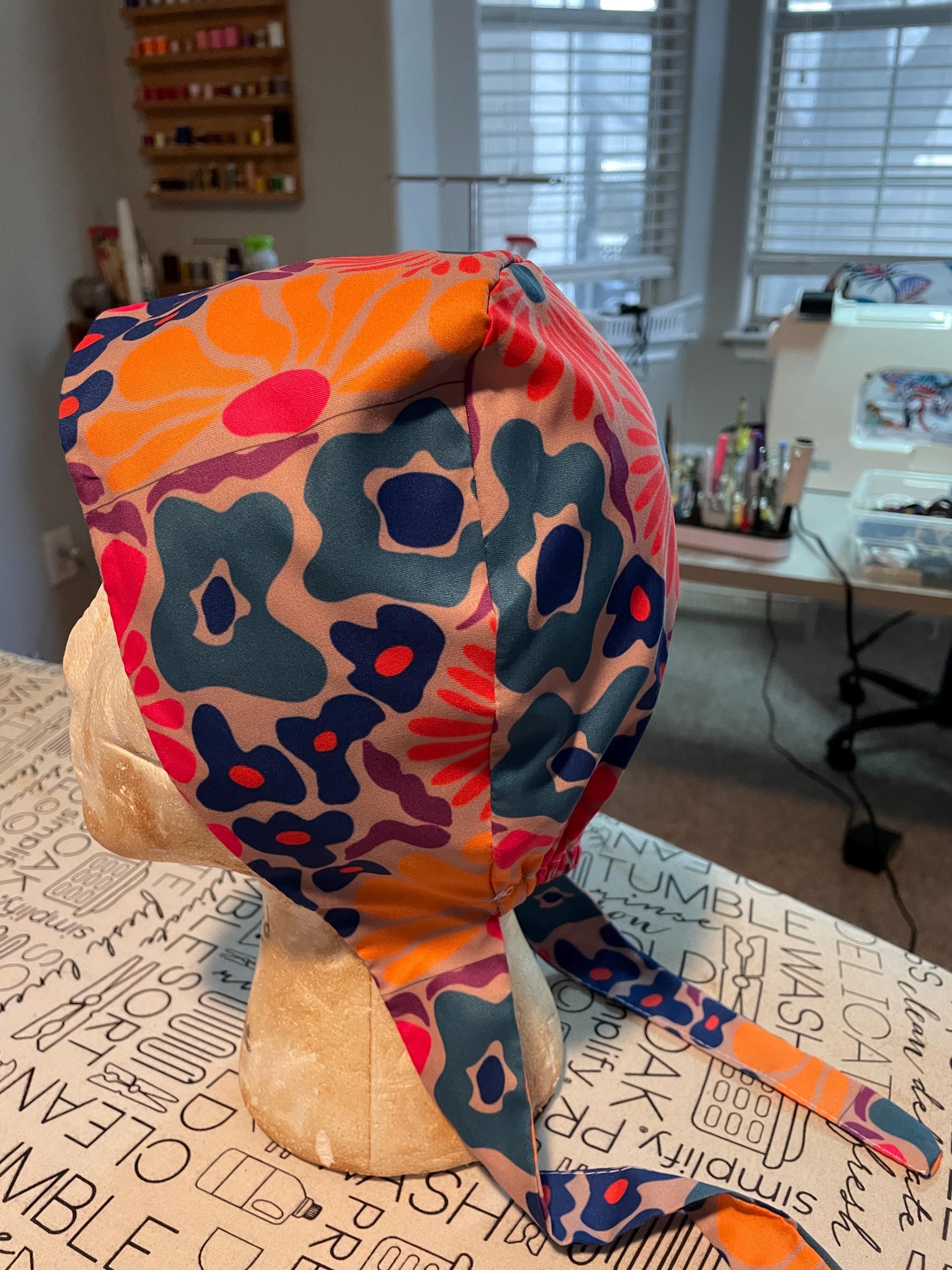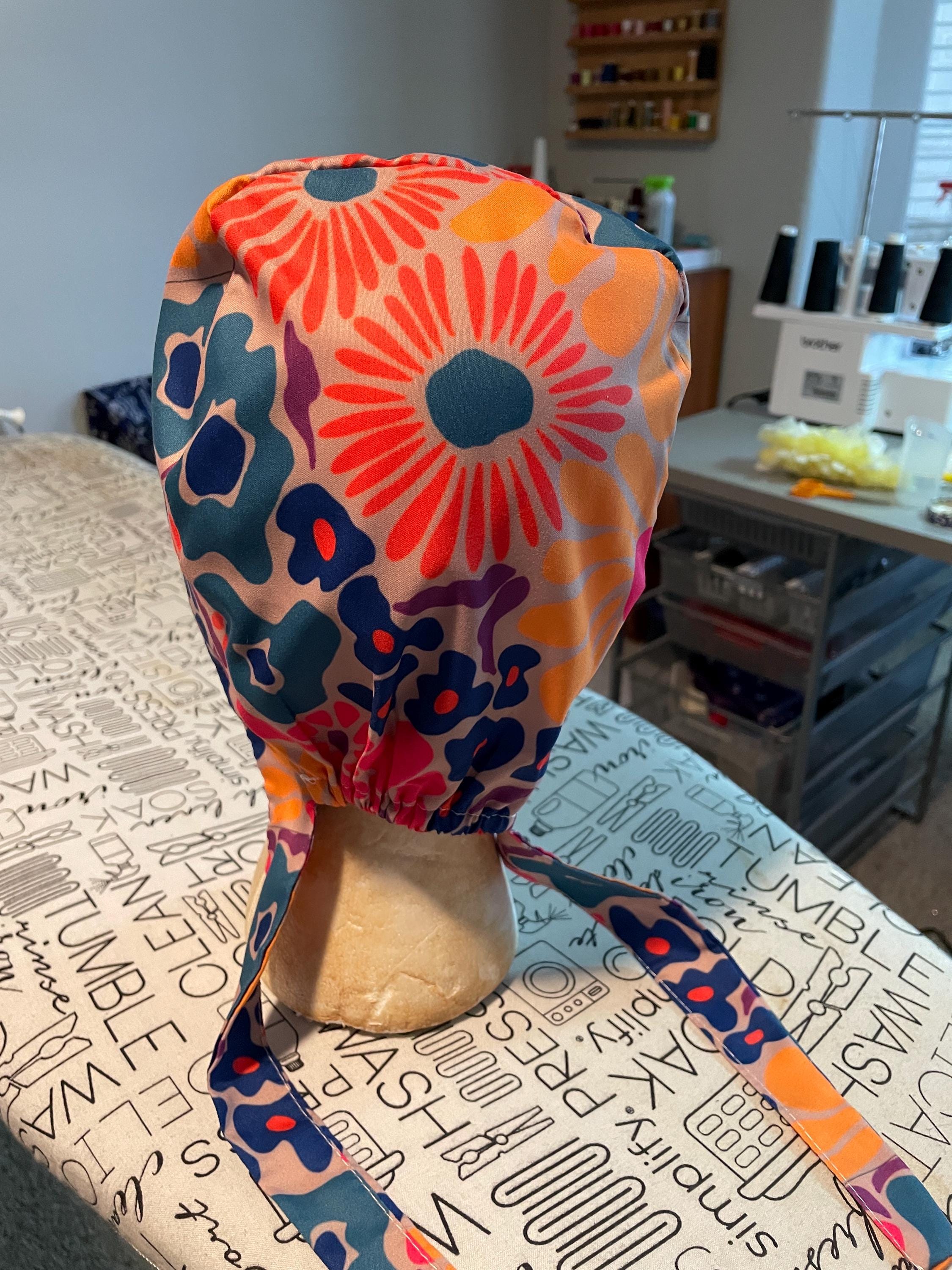 Colorful tie back scrub hat