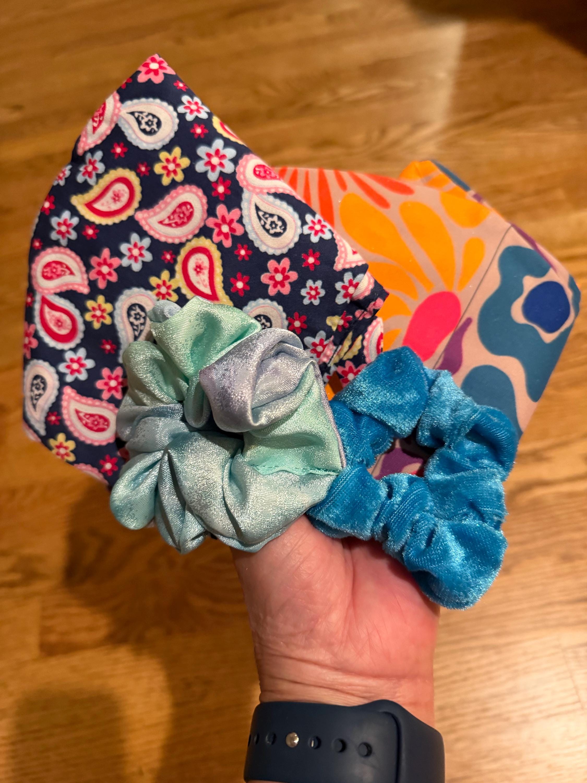 The quality of craftsmanship is exceptional. Love the pattern of the fabric. The seller included an additional cap with hair ties, which was an unexpected surprise! Thank you!