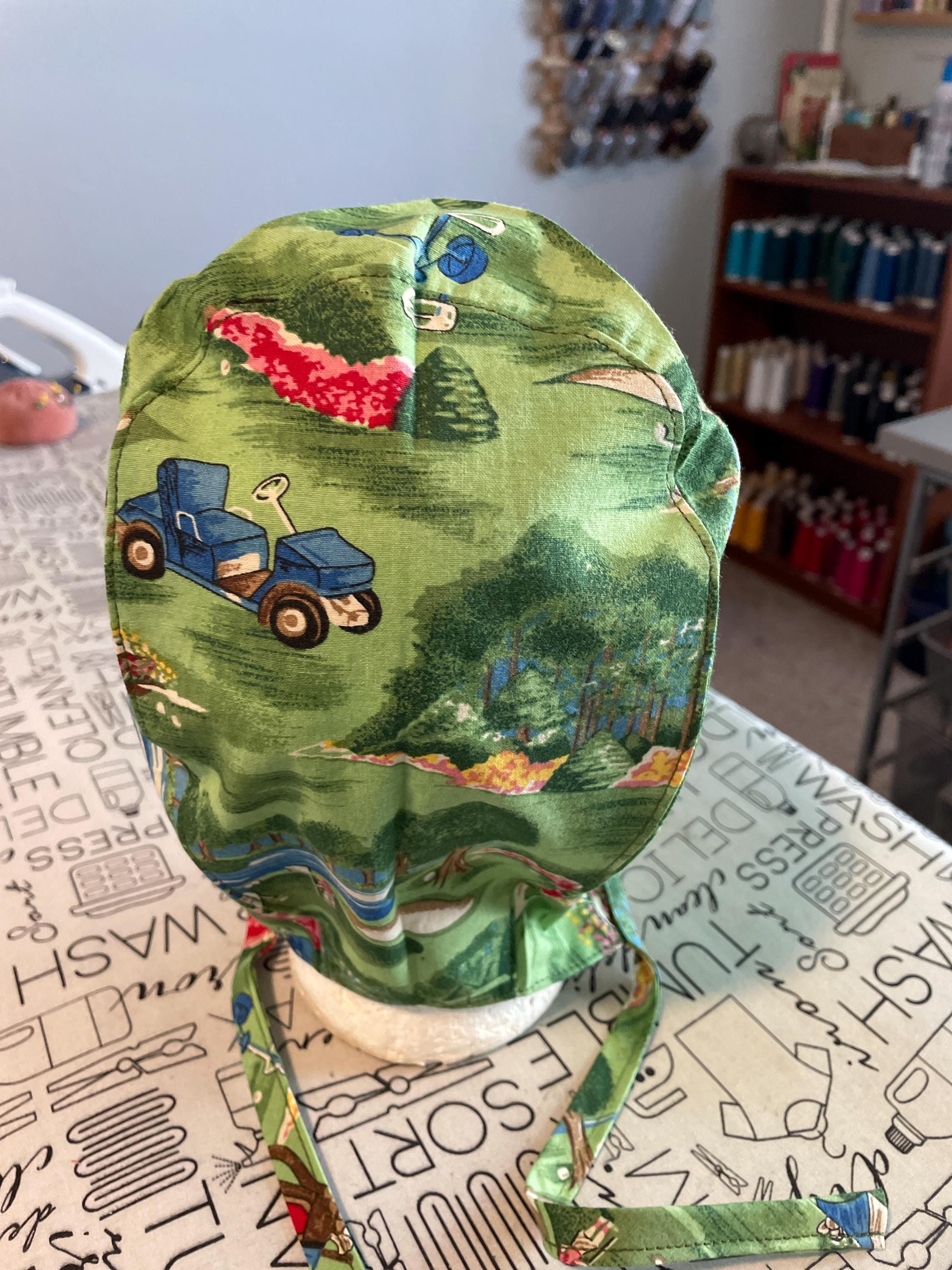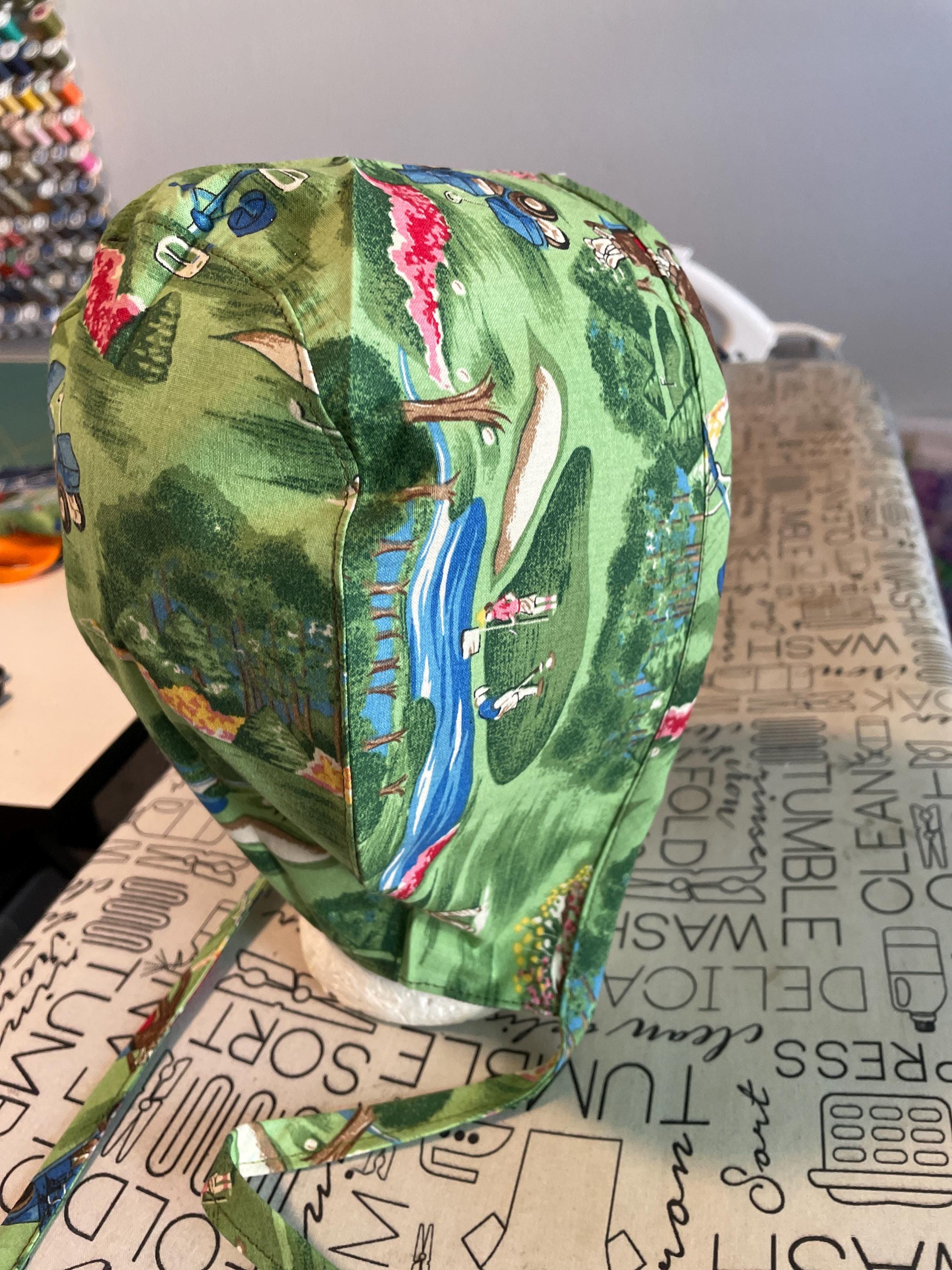Tie back golf scrub hat